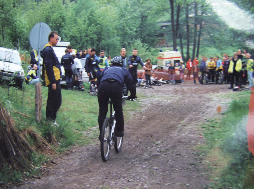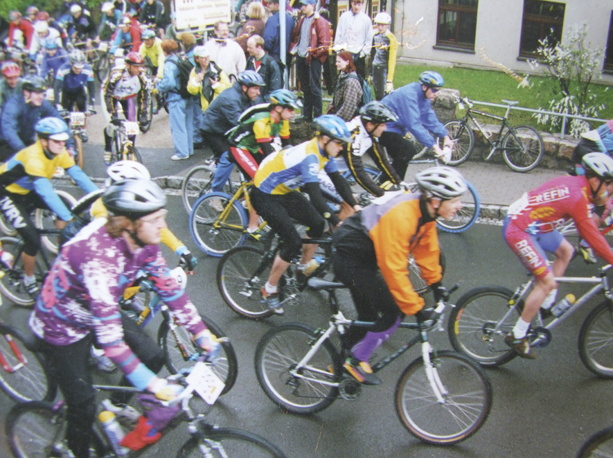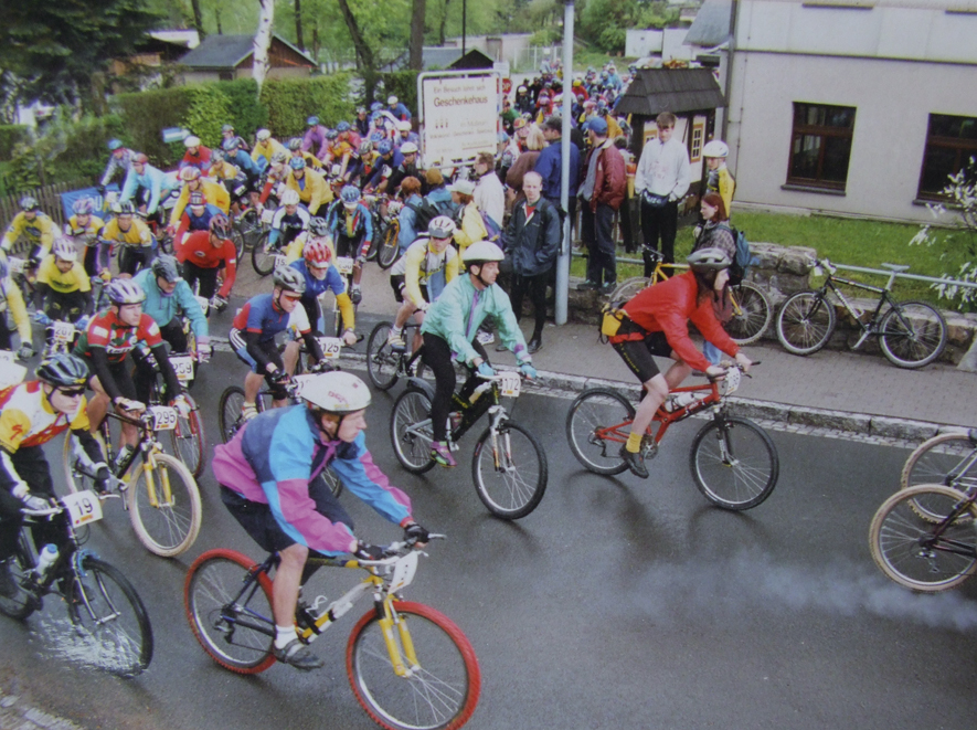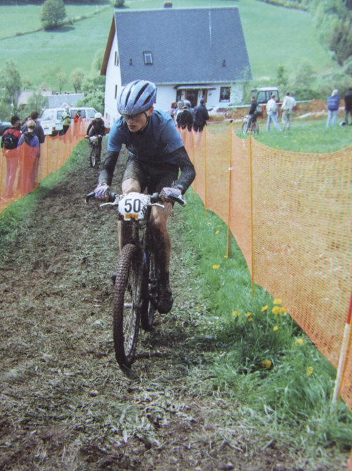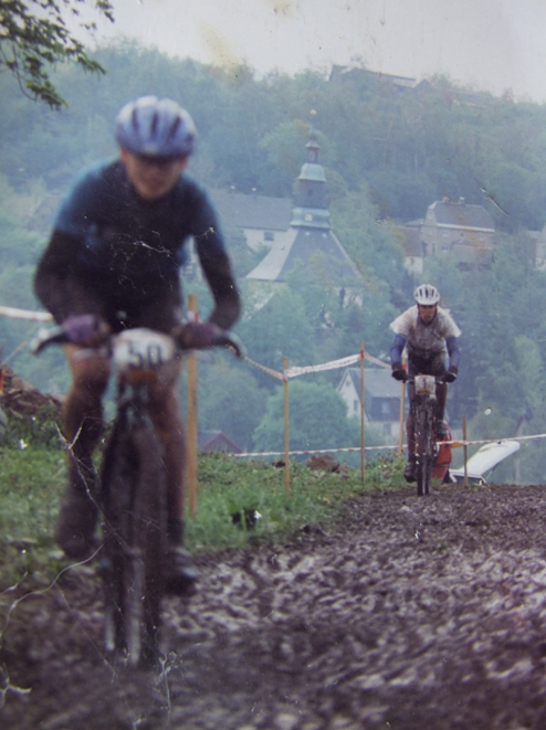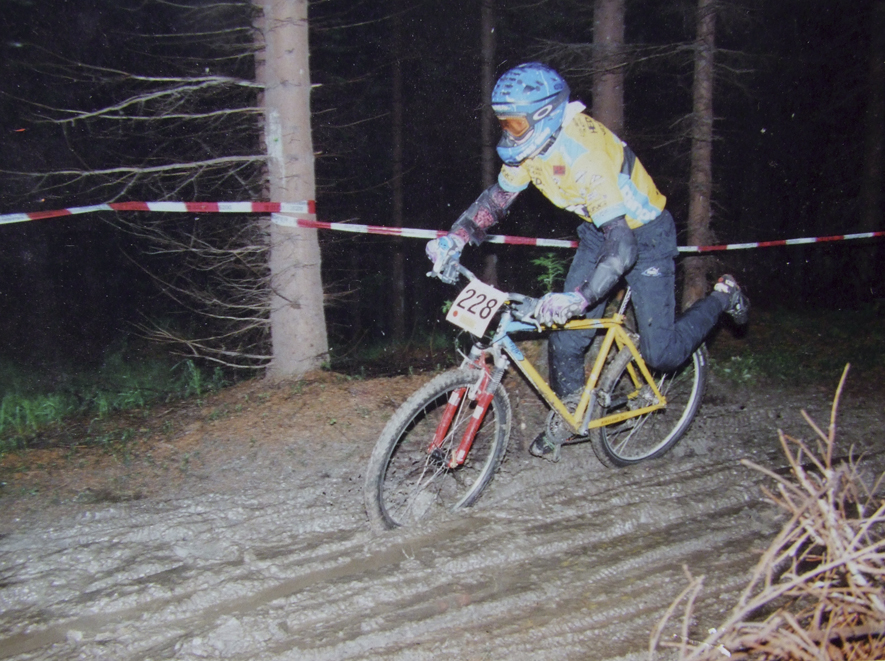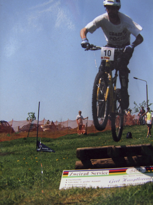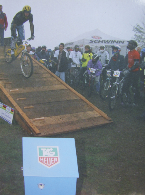 Es war sicher der härteste Marathon aller Zeiten. Torsten Marx gewinnt das Schlammrennen in 6:20:44!!! Neben Hill-Climb und Dual-Slalom kommt erstmalig ein Downhill-Rennen zur Austragung. Dieses gewinnt der Scott-Fahrer Christian Lemmerz. Christian war seinerzeit einer der besten Downhiller in Deutschland, immer die Nr. 2 hinter Jürgen Benicke. Er ist bei einem Bergunfall 2005 leider tödlich verunglückt. Im Rahmenprogramm war der spätere “Schanzenspringer” von Garmisch Igor Obu mit einer Trailshow am Start.