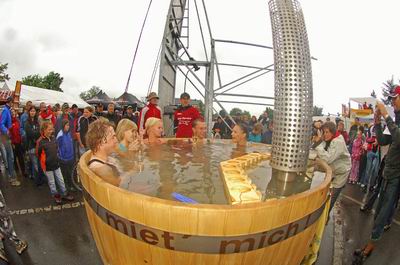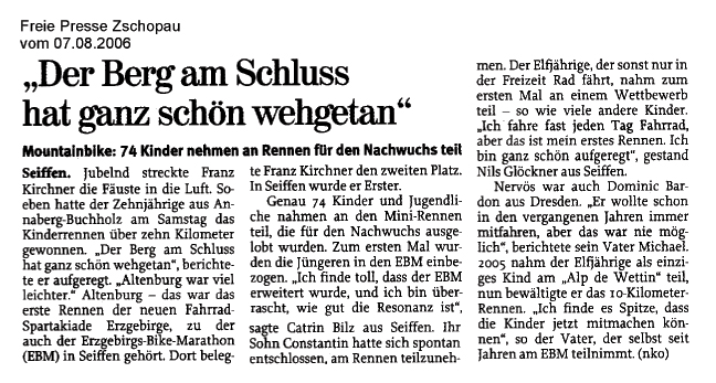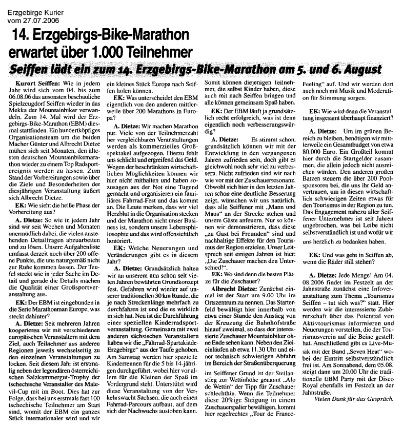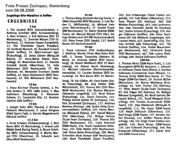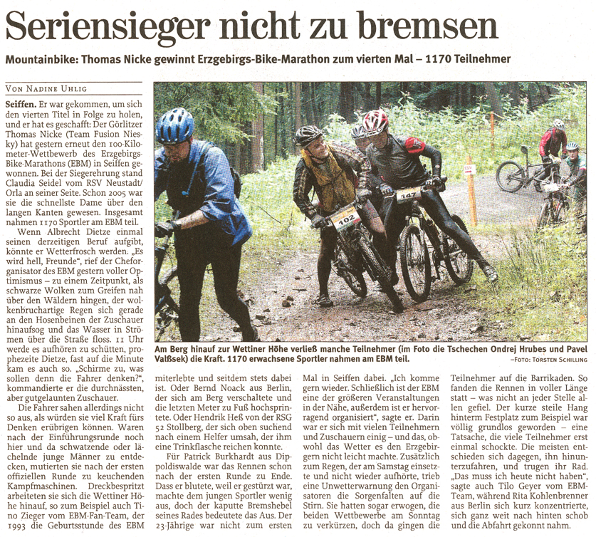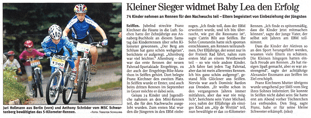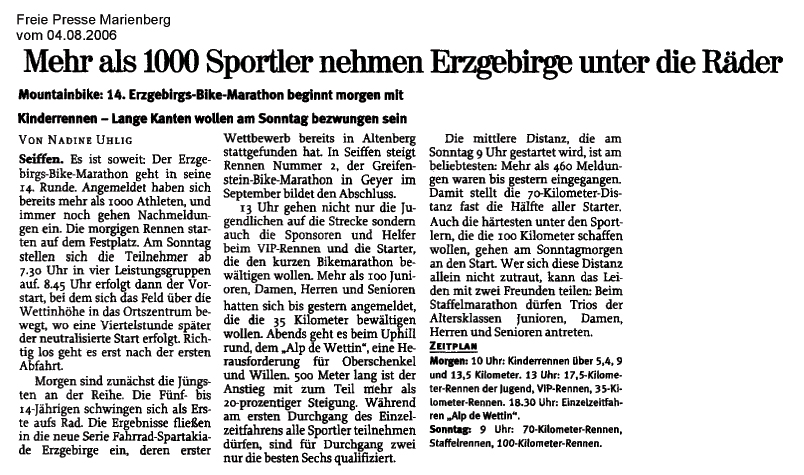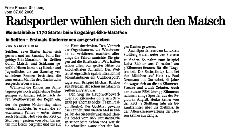 Die Presse titelt „Radsportler wühlen sich durch den Matsch“, es finden erstmals Kinderrennen statt, Thomas und Claudia sind würdige Champions. In Erinnerung bleibt der extra im Ziel aufgestellte beheizte Bade-Bottich, in dem die Sieger ein Entspannungsbad nahmen.