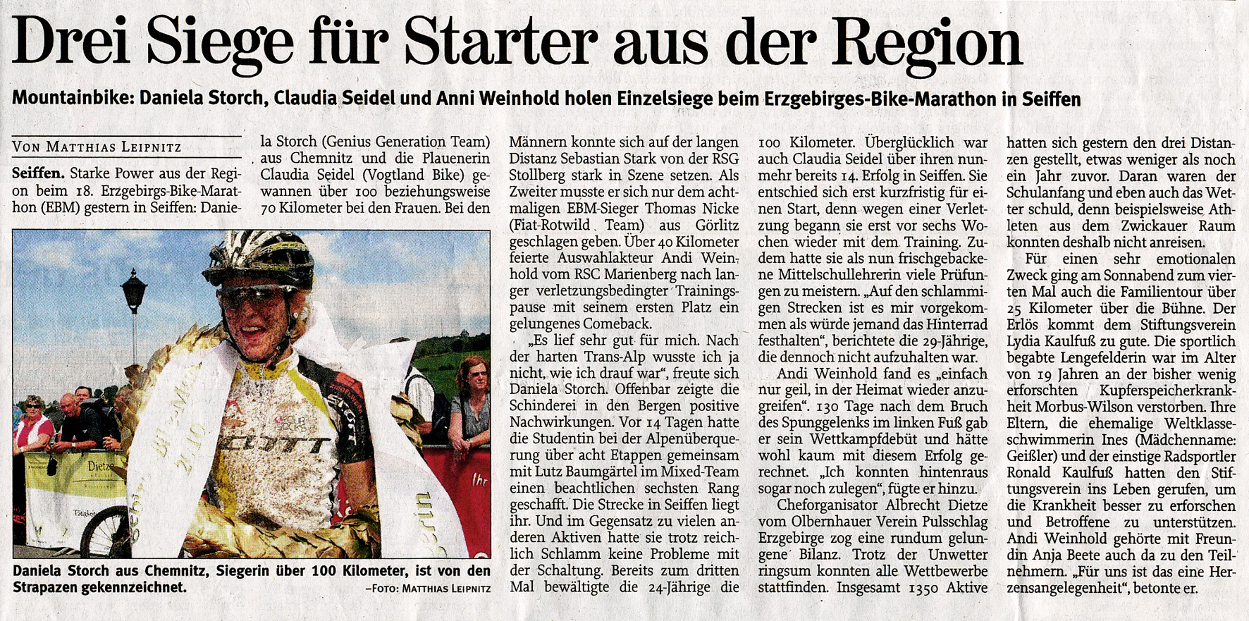 Es ist nicht zu glauben, Thomas gewinnt zum 7. Mal, bei den Damen trägt sich Daniela Storch erstmals in die Siegerliste ein. Claudia holt ihren insgesamt 14. Erfolg in Seiffen und gewinnt die 70 km, Andi Weinhold triumphiert auf der 40 km Strecke.