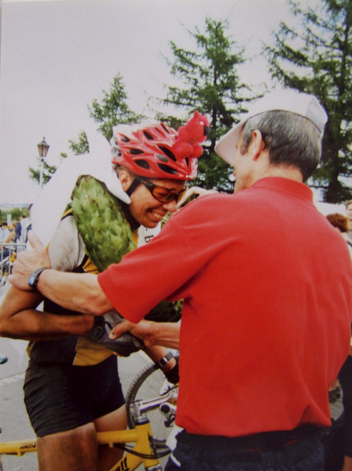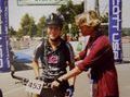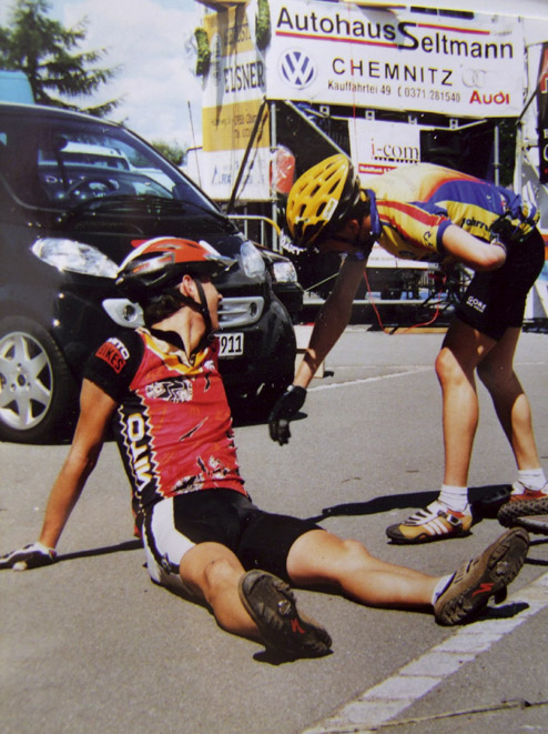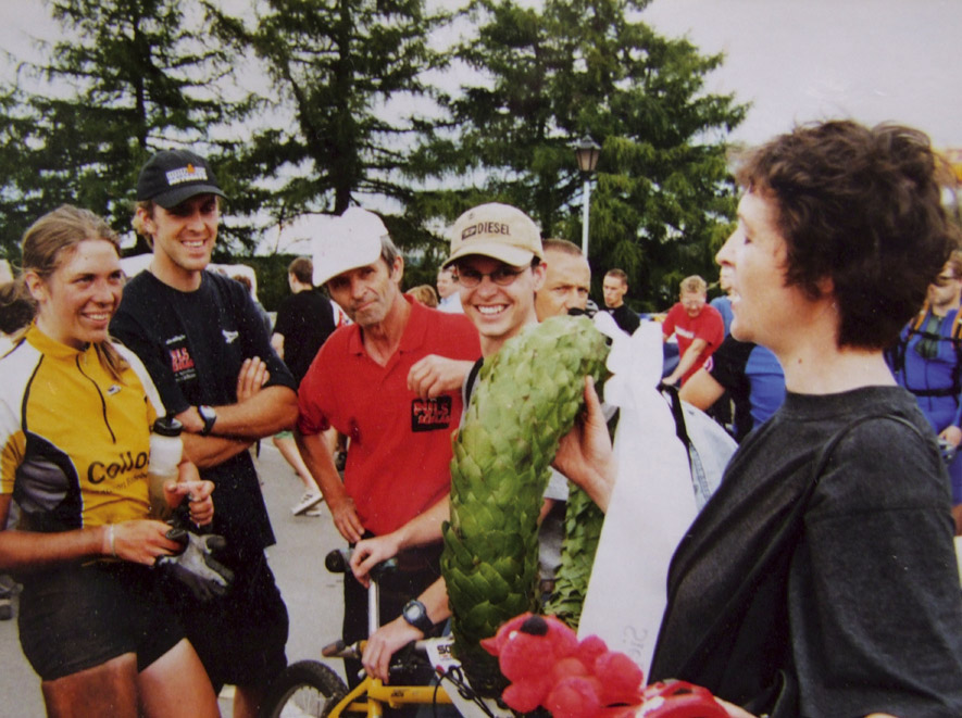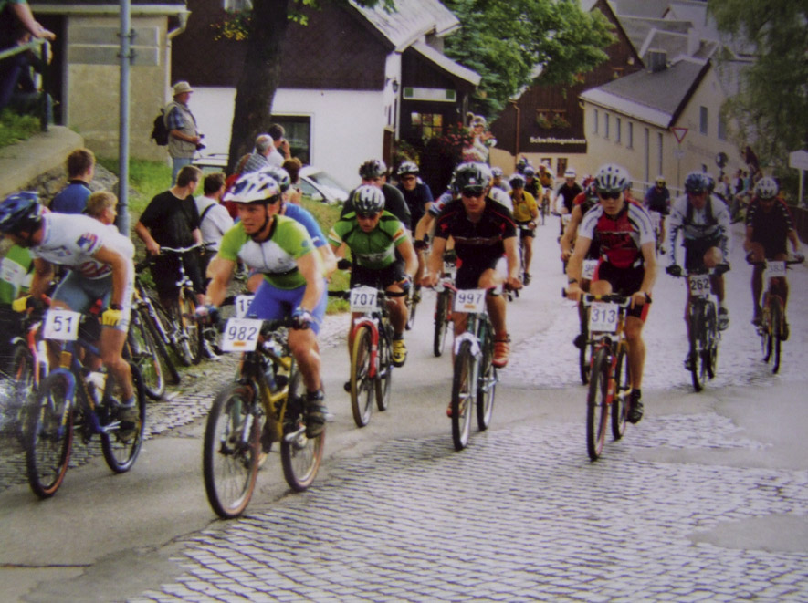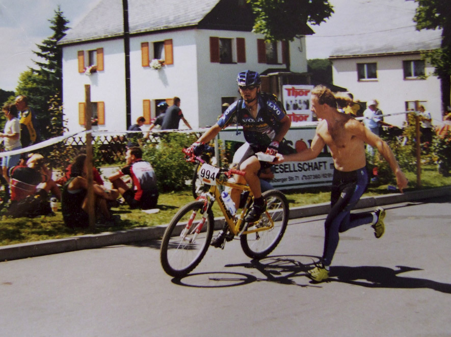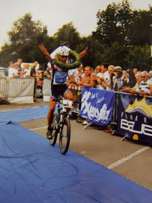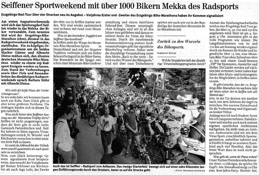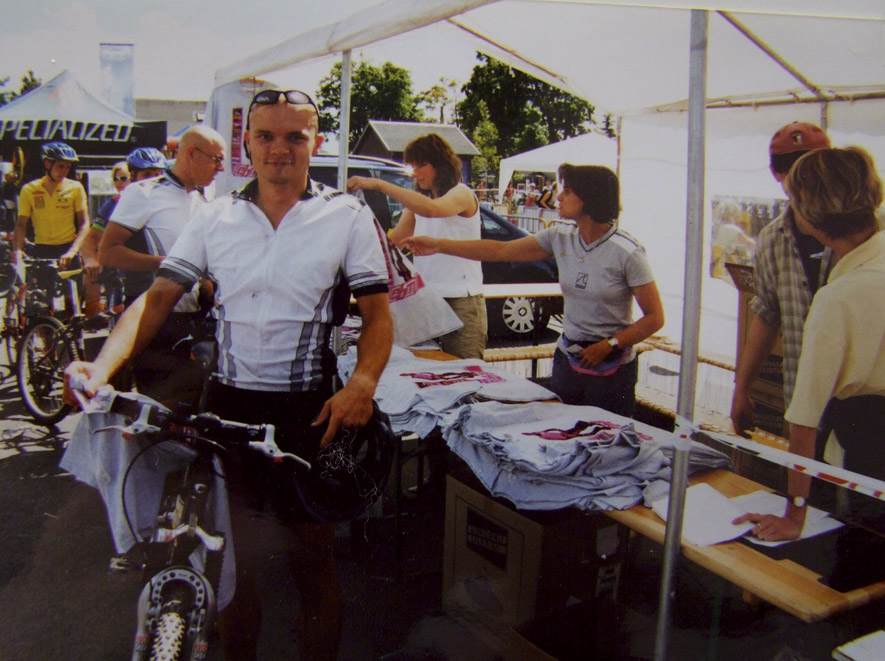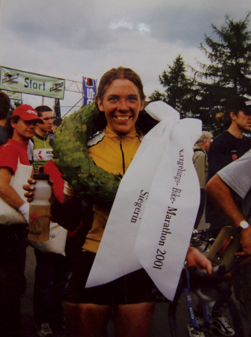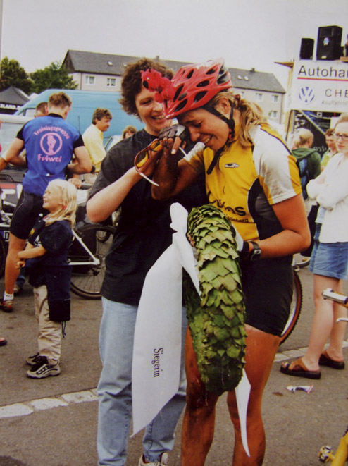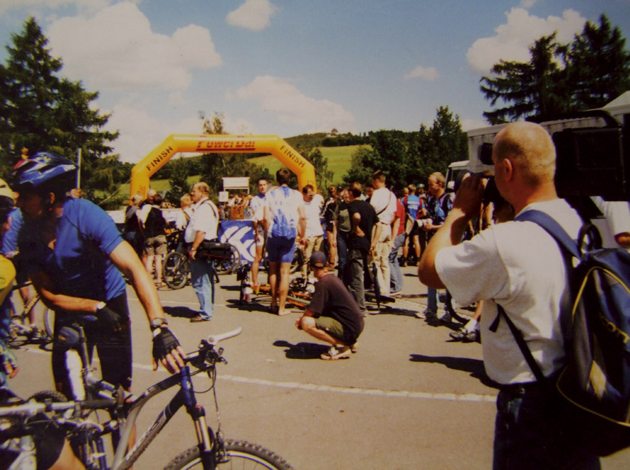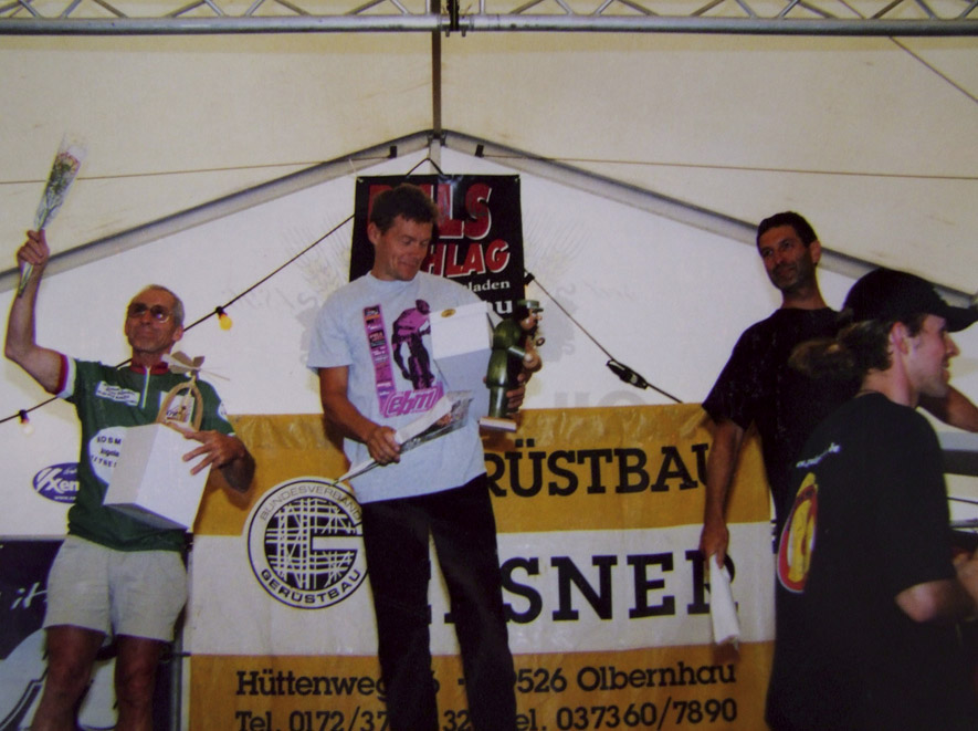 Austrainiert bis in die Haarspitzen war er angetreten und hatte zu keinem Zeitpunkt des Rennens Zweifel an seinem Sieg aufkommen lassen. Wir haben uns sehr für ihn gefreut. Bei den Damen gewinnt Karin Bürger aus Dresden. In der Presse ist erstmals vom “Mekka des Radsports” die Rede. „2001 – Sieg beim EBM und einer meiner schönsten sportlichen Erfolge!“